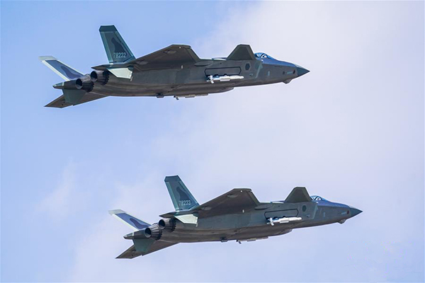 10月19日,在慶祝人民空軍成立70周年航空開(kāi)放活動(dòng)上,空軍殲-20戰(zhàn)機(jī)進(jìn)行掛彈飛行展示。萬(wàn)全 攝