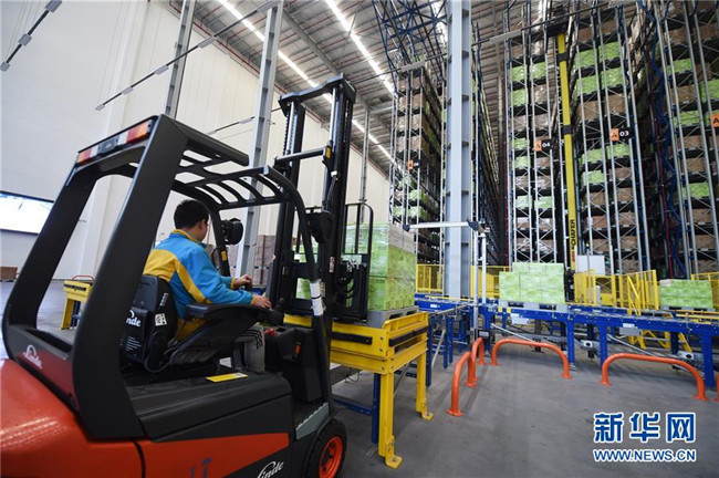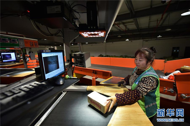 工作人員在南京市雨花經(jīng)濟(jì)開發(fā)區(qū)一家智慧物流基地內(nèi)忙碌(2016年11月3日攝)。該物流基地建筑面積達(dá)20多萬平方米,可存儲(chǔ)商品2000萬件,日處理包裹181萬件。整個(gè)物流基地實(shí)現(xiàn)全流程自動(dòng)作業(yè),從訂單生成到商品出庫,最快可縮短到30分鐘。新華社發(fā)