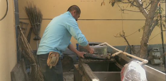 “童家大院”門前,50多歲的張淑琴正在清洗著農家菜,準備腌菜過冬。