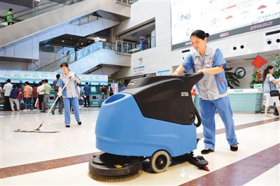 兩位清潔工在安徽省銅陵市人力資源和社會(huì)保障局開發(fā)的市人民醫(yī)院公益性崗位上工作。過仕寧 攝(人民圖片)
