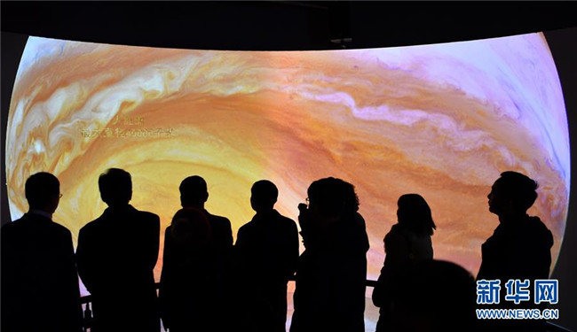 12月14日,觀眾參觀藏域星球天文科普體驗館。當(dāng)日,藏域星球天文科普體驗館在西藏拉薩開館試運營,這是西藏第一家天文科普體驗館。據(jù)介紹,此館以感知宇宙、認知宇宙、探索宇宙為主題,以參觀者的第一感官體驗為設(shè)計導(dǎo)向,利用互動投影、懸浮投影、物體跟蹤、人體捕捉、體感互動、VR等高科技手段展示藏地的神秘,揭示宇宙的奧秘。新華社記者李鑫攝
