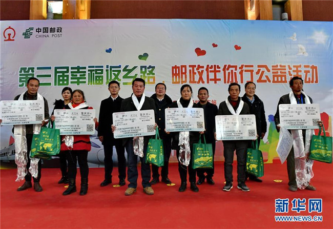 當(dāng)日,由中國郵政集團(tuán)公司西藏自治區(qū)分公司和青藏鐵路公司拉薩站共同組織的第三屆“幸福返鄉(xiāng)路·郵政伴你行”免費贈送火車票公益活動在拉薩火車站舉行。中國郵政集團(tuán)公司西藏自治區(qū)分公司出資20余萬元購買12月23日至12月26日拉薩至成都、重慶、西寧、蘭州方向共計436張火車票,免費贈送給西藏外來務(wù)工人員。青藏鐵路公司拉薩站為受助務(wù)工人員設(shè)置專用安檢通道和候車專區(qū)。
