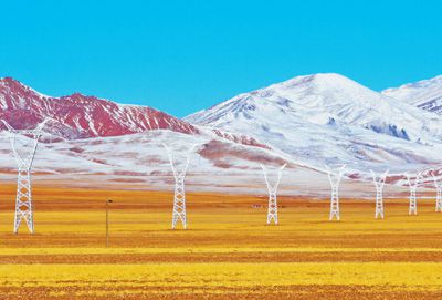 圖為多瑪至雙湖110千伏輸電線(xiàn)路,全長(zhǎng)108公里。李東淮攝(影像中國(guó))