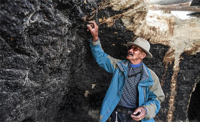 76歲的達(dá)瓦次仁走過古格遺址前的洞窟,這里曾是他的家(7月30日攝)。  新華社記者 晉美多吉 攝