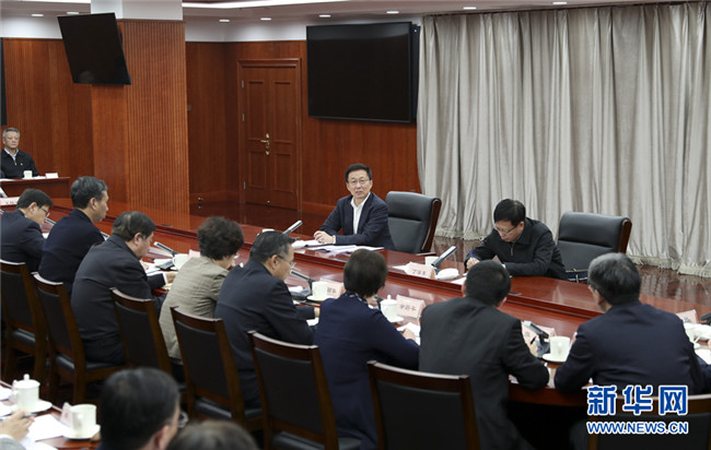 1月2日,中共中央政治局常委、國務(wù)院副總理韓正在財(cái)政部召開財(cái)稅部門座談會。 新華社記者 丁海濤 攝