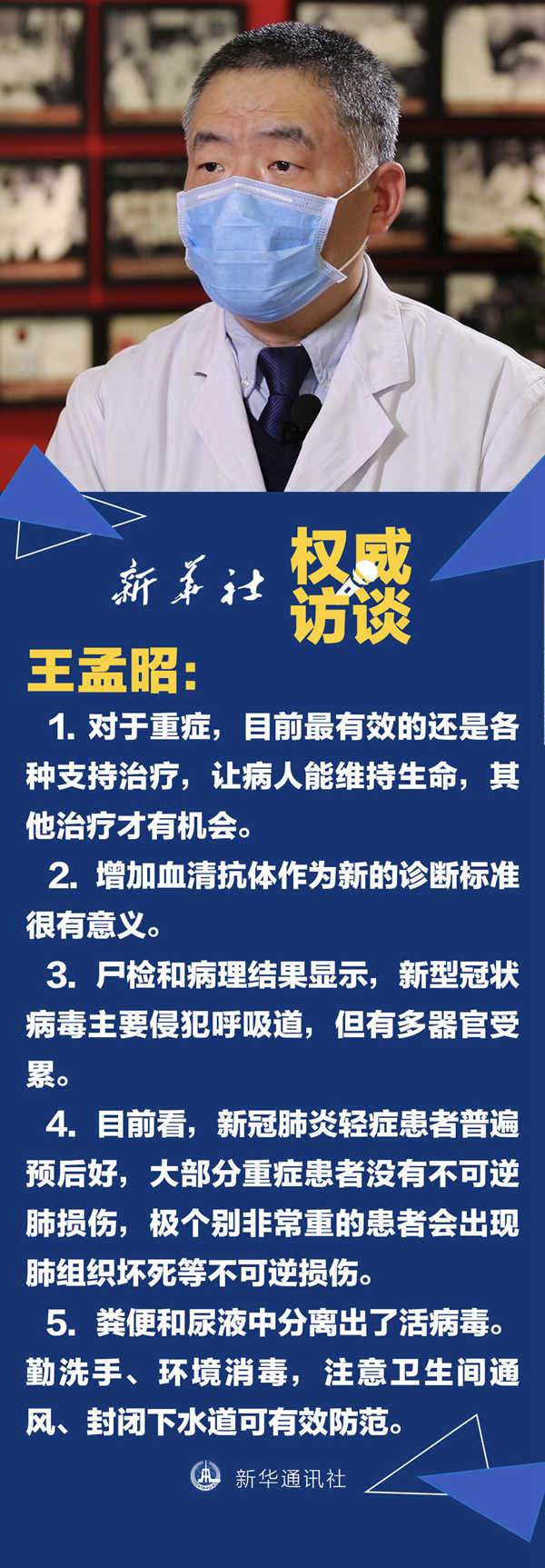 國家衛(wèi)健委近日發(fā)布《新型冠狀病毒肺炎診療方案(試行第七版)》。關(guān)于新版診療方案里加入的危重癥、重癥“預(yù)警指標(biāo)”能降低病亡率嗎?血清抗體檢測能解決核酸“假陰”問題嗎?糞便和尿液里的病毒怎么防控?針對這些問題,新華社記者專訪了北京協(xié)和醫(yī)院呼吸與重癥醫(yī)學(xué)科主任王孟昭,一起來了解一下吧。