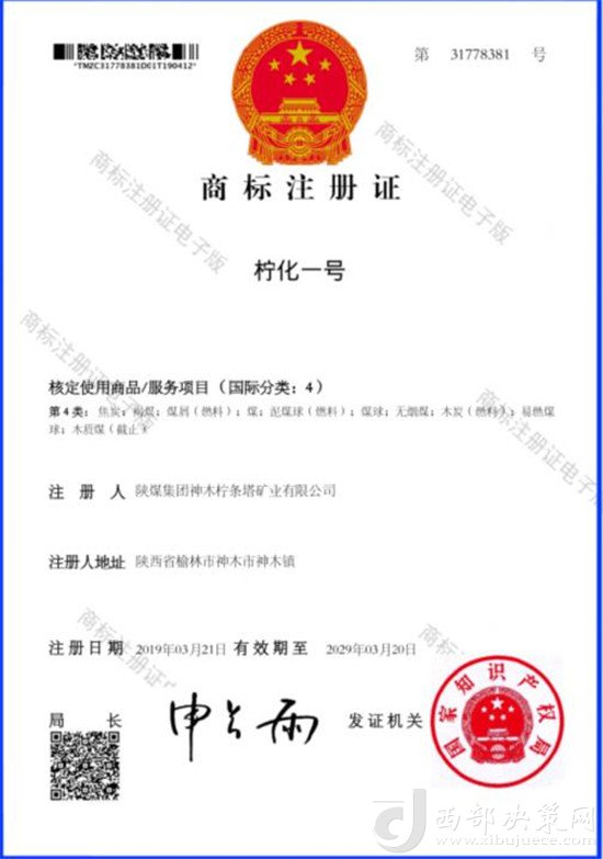 為了讓“檸條塔”煤的招牌更亮、勢頭更足,2017年,該公司又制定了提品質(zhì)、增品種、創(chuàng)品牌的“三品”建設(shè)三年行動方案,積極推行定制化生產(chǎn)模式,并適時推出“檸化一號”化工煤品牌。 有志者,事竟成,2019年,“檸化一號”終于拿到了國家知識產(chǎn)權(quán)局注冊證,同年“檸條塔”煤被授予“中國名優(yōu)產(chǎn)品”稱號。質(zhì)量強企的實踐,正在使檸條塔煤從燃料走向原料、從大漠走向江河、從內(nèi)陸走向沿海。