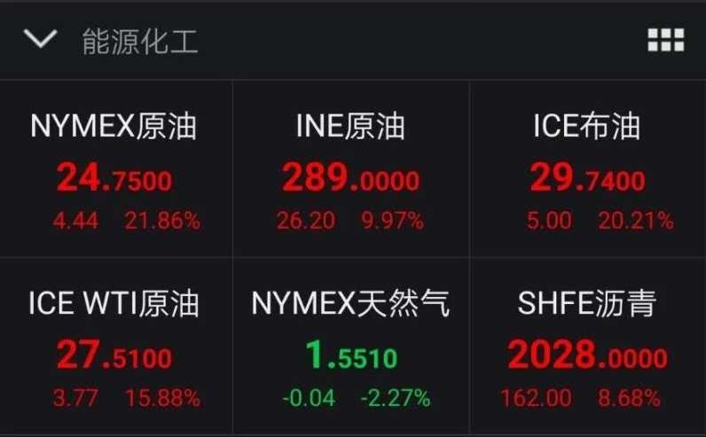 4月2日,國際原油期貨價格出現(xiàn)暴漲,美國WTI原油期貨盤中最高漲超30%,布倫特原油期貨盤中最高漲超46%。截至收盤,美國WTI 原油期貨價格漲幅24.67%,報25.32美元/桶;布倫特原油期貨漲幅21.02%,報29.94美元/桶,均為史上最大單日漲幅。(張旭)