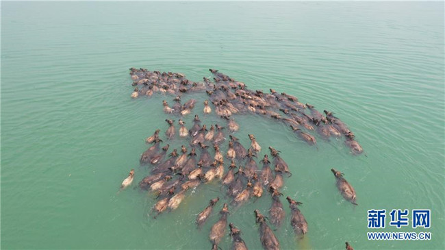 當(dāng)日,在四川南充市蓬安縣嘉陵江邊,上百頭水牛爭相渡江,上島吃草,當(dāng)?shù)氐?020年嘉陵江放牛季由此拉開帷幕。 每年四月到十月,在嘉陵江四川蓬安段,每日清晨,上百頭水牛渡江覓食,到夕陽西下時,牛兒游回來,形成“百牛渡江”的生態(tài)奇觀。近年來,蓬安縣利用這一獨特生態(tài)資源,大力發(fā)展鄉(xiāng)村旅游。