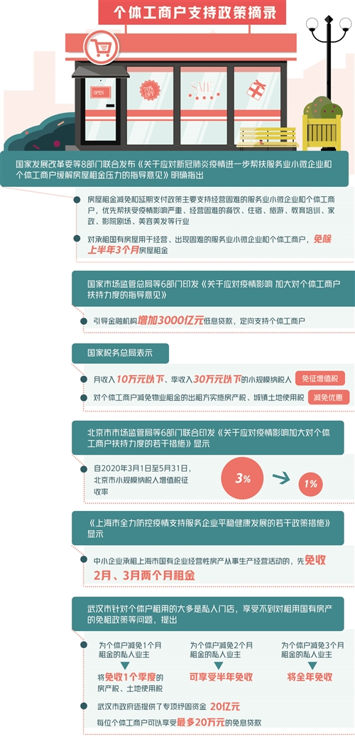 顯而易見,房租是個體工商戶最大的成本。黨中央、國務(wù)院一直高度關(guān)注中小微企業(yè)、個體戶的房租減免問題,并作出多次部署。早在疫情暴發(fā)初期,市場監(jiān)管總局等六部門出臺的《關(guān)于應(yīng)對疫情影響 加大對個體工商戶扶持力度的指導意見》就提出鼓勵各地結(jié)合實際減免個體工商戶房租。