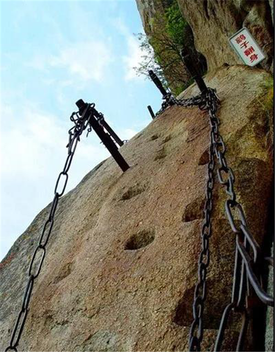 世界十大險道之一,有700余年的歷史,是華山派第一代宗師元代高道賀志真為遠離塵世靜修成仙,在萬仞絕壁上鑲嵌石釘搭木椽而筑。是華山的險中之險。古往今來,歷險探勝者絡(luò)繹不絕。