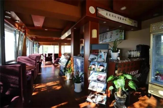坐落于華山北峰云臺山莊??Х任菀怨艠滹L(fēng)格為主,玻璃落地窗通透明亮,猶如置身于大自然的懷抱中。