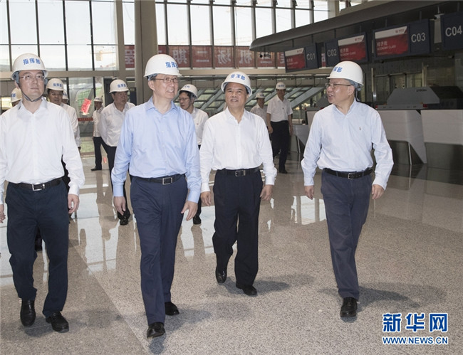 5月30日至31日,中共中央政治局常委、國務院副總理韓正在海南調研。這是5月30日,韓正在??诿捞m國際機場二期擴建項目施工現(xiàn)場,了解規(guī)劃建設和投產(chǎn)運營準備情況。 新華社記者 王曄 攝