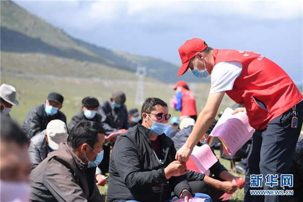 6月20日,在布爾津縣阿貢蓋提草原,牧民在看布爾津縣也格孜托別鄉(xiāng)克孜勒托蓋村家庭醫(yī)生簽約團(tuán)隊(duì)發(fā)放的宣傳材料。圍繞實(shí)現(xiàn)人人享有基本醫(yī)療衛(wèi)生服務(wù)目標(biāo),2016年起,新疆布爾津縣開展家庭醫(yī)生簽約服務(wù)工作。該縣組建家庭醫(yī)生簽約團(tuán)隊(duì)65個(gè),團(tuán)隊(duì)醫(yī)務(wù)人員233名,通過手機(jī)APP、基本公衛(wèi)系統(tǒng)與全縣建檔立卡貧困戶進(jìn)行電子化簽約,提升村醫(yī)隨訪的工作效率和質(zhì)量。截至目前,已完成簽約42936人,履約40043人。新華社記者沙達(dá)提攝