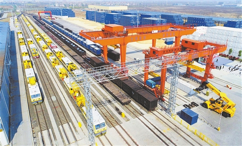 湖北襄陽自貿片區(qū)內襄北編組站發(fā)出貨運班列。 (資料圖片)
