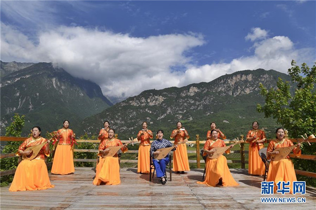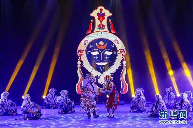 四川省阿壩藏族羌族自治州阿壩縣“蓮寶葉則”演藝公司演職人員在表演傳統(tǒng)曲種《折嘎》(6月14日攝)。折嘎是古老的曲種,如今被搬上舞臺,并在演唱中加入了傳遞吉祥、贊頌新人新事新風(fēng)尚的內(nèi)容。這些演職人員中不少是從當?shù)剜l(xiāng)村里來的年輕人,經(jīng)過培訓(xùn)合格后成為演員,通過表演獲得穩(wěn)定的收入。新華社記者 沈伯韓 攝