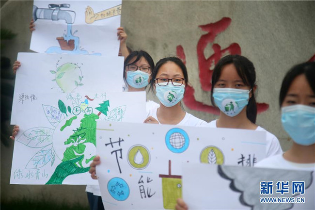 7月2日,江蘇南通科技職業(yè)學院的學生展示手繪的節(jié)能主題宣傳畫。新華社發(fā)(徐培欽攝)