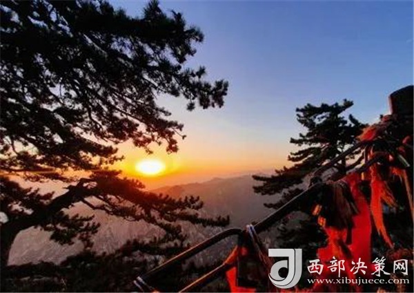 是時,但見夜幕自東方悄然隱退,晨曦初露,漸漸霞光瑰麗,云源奔涌。瞬間,一輪火球噴薄而出,繼而光芒四射,氣象萬千,整個世界大放光明,游人身心為之一振。待云霧散盡,蒼松翠柏,則更加清麗悅目,美妙神奇。故而,游名山者必登華山,登華山者必觀日。華山日出亦被列為華山自然風光中的重要景觀之一。