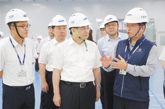 7月21日,省委書記胡和平到部分外資企業(yè)調(diào)研并召開座談會(huì)。圖為他在三星(中國)半導(dǎo)體公司閃存芯片二期項(xiàng)目現(xiàn)場聽取項(xiàng)目規(guī)劃介紹。 本報(bào)記者 張辰攝