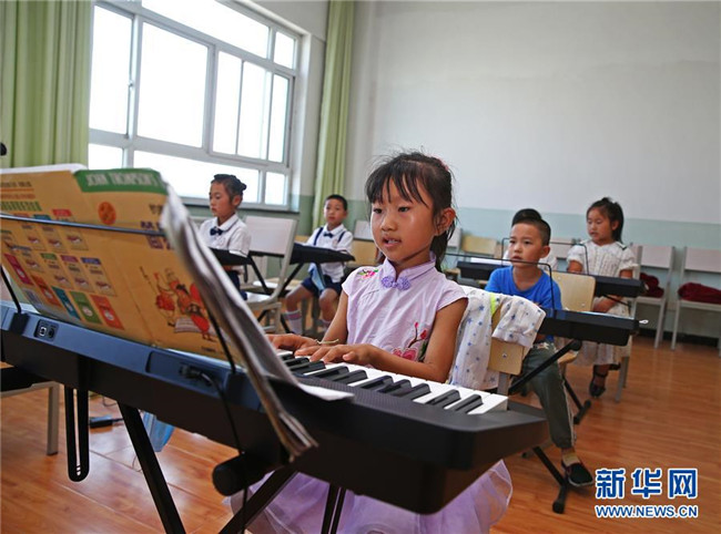7月22日,學生在石嘴山市大武口區(qū)青少年學生校外活動中心音樂教室內練習電子琴。新華社記者 賈浩成 攝