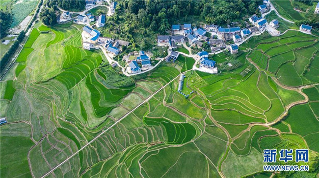 遵義市播州區(qū)花茂村一景(7月14日攝,無(wú)人機(jī)照片)。新華社記者 陶亮 攝