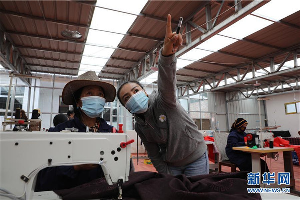 7月23日,在甘肅省甘南藏族自治州夏河縣??奇?zhèn)崗岔村的扶貧車間內(nèi),卓瑪吉(左二)了解成衣加工情況。崗岔村是甘肅省甘南藏族自治州夏河縣??奇?zhèn)的一個牧業(yè)村,平均海拔3000米以上。2018年,在夏河縣文明辦工作的卓瑪吉開始擔(dān)任駐村幫扶工作隊隊長,每年都有200多天待在草原上。兩年來,卓瑪吉帶領(lǐng)大家開辦扶貧車間,發(fā)展特色產(chǎn)業(yè),聯(lián)系勞務(wù)輸出。為了讓村民更全面地了解精準(zhǔn)扶貧政策,卓瑪吉登門宣講政策。為了提高村容村貌,卓瑪吉發(fā)動大家開展廁所革命和庭院環(huán)境評比,積極響應(yīng)甘南藏族自治州“全域無垃圾”創(chuàng)建行動。她還從縣城請來醫(yī)生,為村民舉辦健康講座,在全村婦女中開展“兩癌篩查”。如今,崗岔村變成了干凈、整齊、富裕、美麗的生態(tài)文明村,提前實現(xiàn)了整村脫貧。談起心愿,卓瑪吉說:“要讓草原和草原上的人都變得更美。”新華社發(fā)(杜哲宇攝)