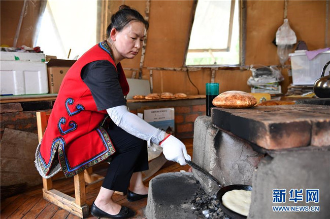 杜峰在位于敖魯古雅鄂溫克族鄉(xiāng)的鄂庫娜列巴房內(nèi)烤列巴(7月14日攝)。 新華社記者 貝赫 攝