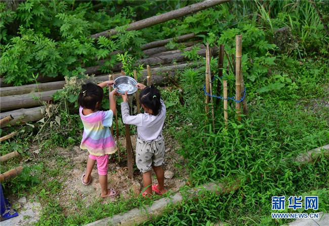 在烏英苗寨,小朋友給樹(shù)苗澆水(6月20日攝)。 新華社記者 黃孝邦 攝