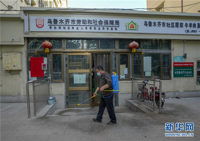 在直銷點(diǎn)正式開門前,陳金奇認(rèn)真做好消殺工作(8月8日攝)。新華社記者 趙戈 攝
