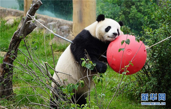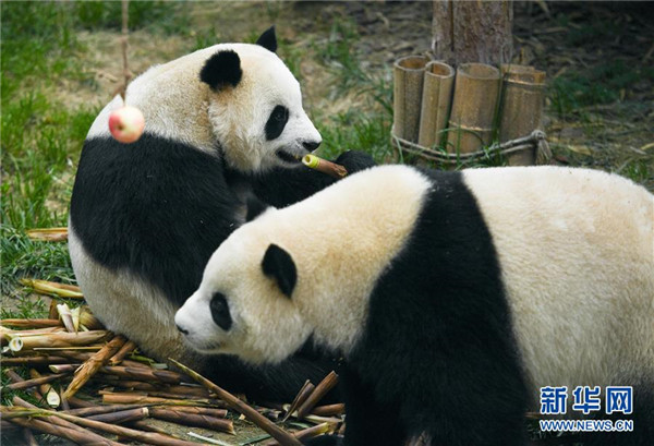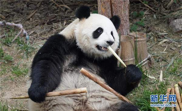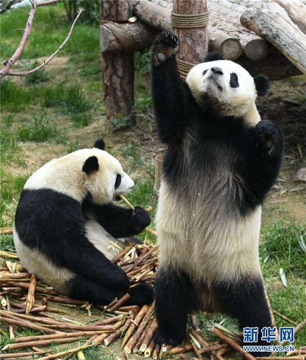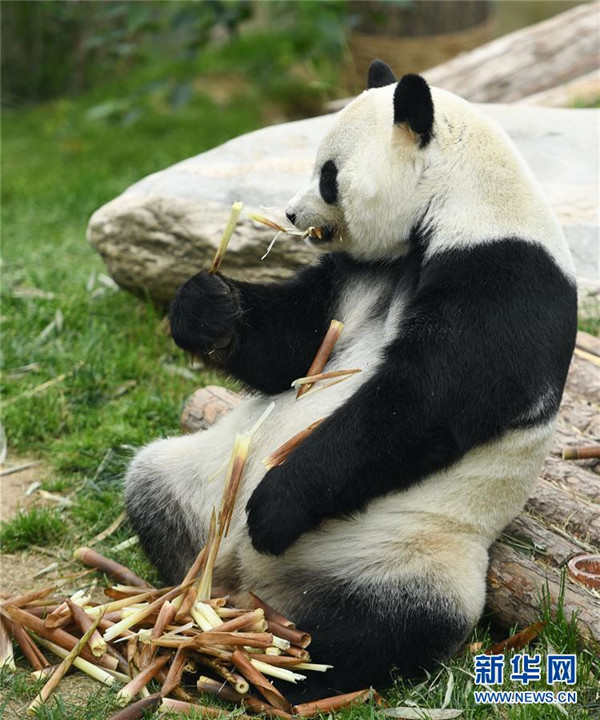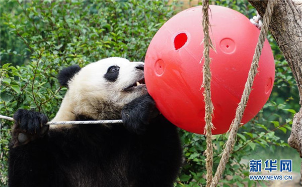青海西寧:大熊貓樂(lè)享高原生活