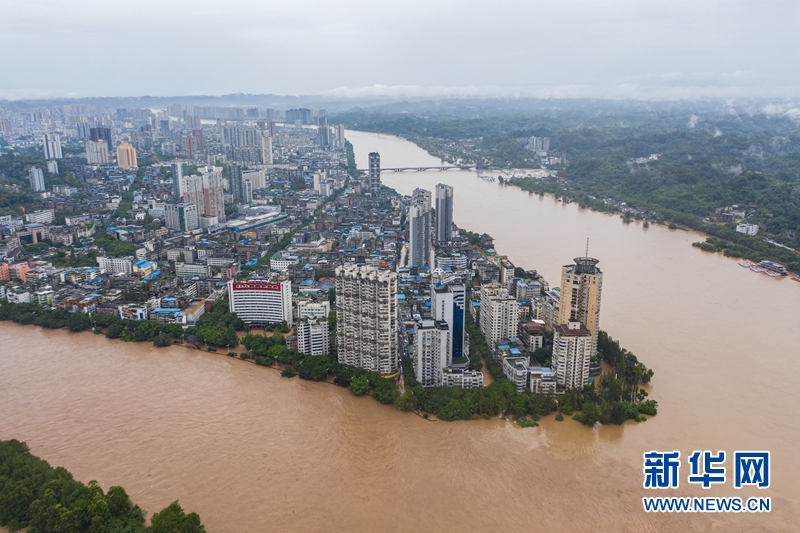 洪水中的樂(lè)山市區(qū)。