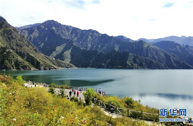 9月2日,游客在天山天池景區(qū)觀(guān)光。新華社發(fā)(段如麗 攝)