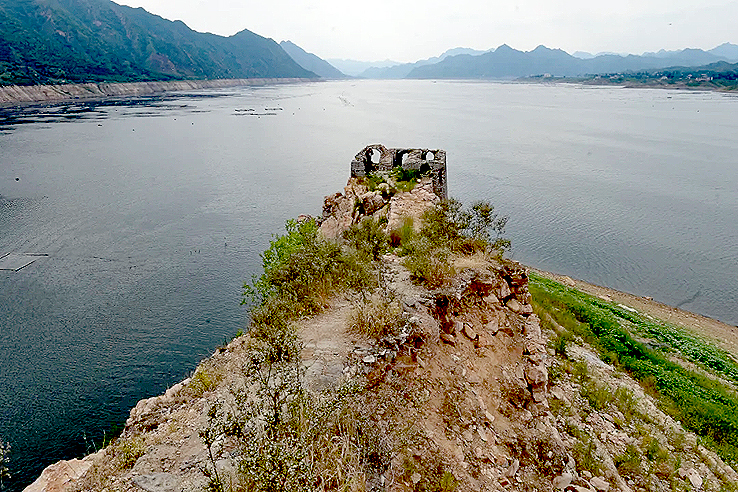 1975年至1981年,為了給天津供水,利用這里的山形地勢,在灤河上游寬城、遷西、興隆三縣交界處,修建了潘家口水庫。引灤入津工程橫切長城,喜峰口、潘家口兩座雄關鑲?cè)胍惶侗滩?,從而形成萬里長城一處絕景——“水下長城”。
