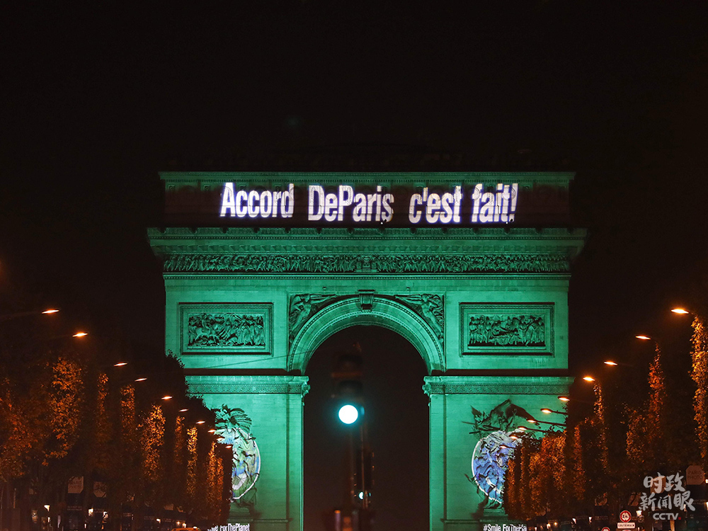 △2016年11月4日,法國凱旋門亮起綠色燈光,慶祝《巴黎協(xié)定》正式生效。這一協(xié)定代表了全球綠色低碳轉(zhuǎn)型的大方向。