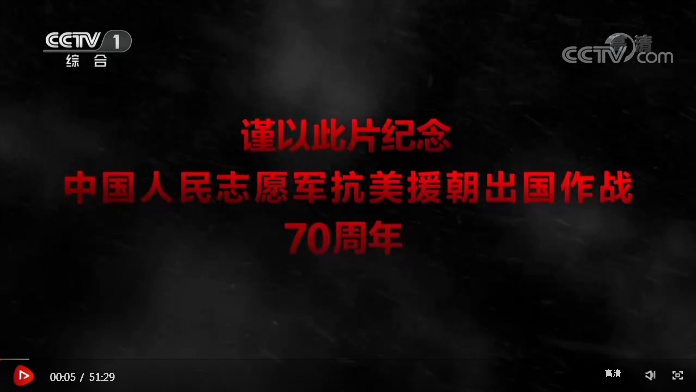 為紀(jì)念中國人民志愿軍抗美援朝出國作戰(zhàn)70周年,經(jīng)中央軍委批準(zhǔn),中央軍委政治工作部組織拍攝了6集大型電視紀(jì)錄片《為了和平》。第五集《萬眾一心》主要反映全國各條戰(zhàn)線和廣大人民積極響應(yīng)黨和政府號(hào)召,開展了轟轟烈烈的抗美援朝運(yùn)動(dòng),支援前線、支援戰(zhàn)爭,中朝兩國人民和軍隊(duì)密切配合、團(tuán)結(jié)戰(zhàn)斗,形成了同仇敵愾、戰(zhàn)勝一切困難和強(qiáng)大敵人的無窮力量。