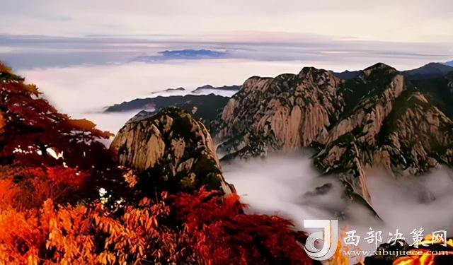 就在這秋日落葉紛飛的季節(jié),華山卻用五顏六色裝扮了起來,紅葉滿山,山崖為底,松檜為墨,一抹絢爛令人心顫,秋風好比一支神奇的彩筆肆意揮灑,將華山繪就成了一幅燦爛的畫卷,從山腳下的郁郁蔥蔥到山頂上的紅黃相間,華山上的每一個臺階都浸染在了火熱的絢爛中。