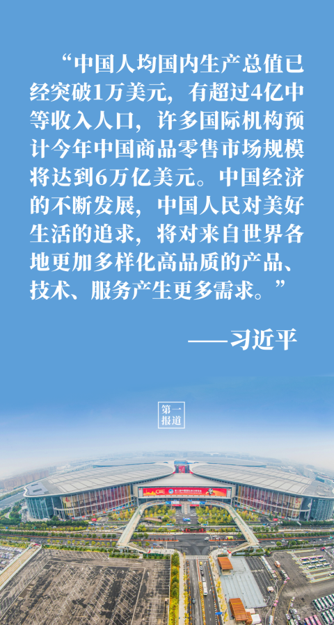 “中國(guó)的發(fā)展離不開世界,世界的繁榮也需要中國(guó)。”談到中國(guó)大市場(chǎng)蘊(yùn)藏的大機(jī)遇,習(xí)主席用事實(shí)和數(shù)據(jù)說話: