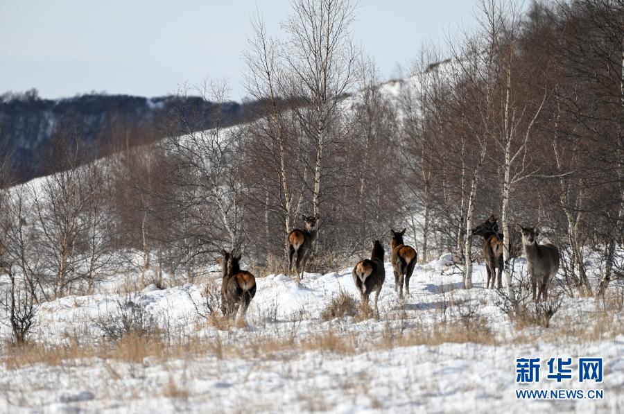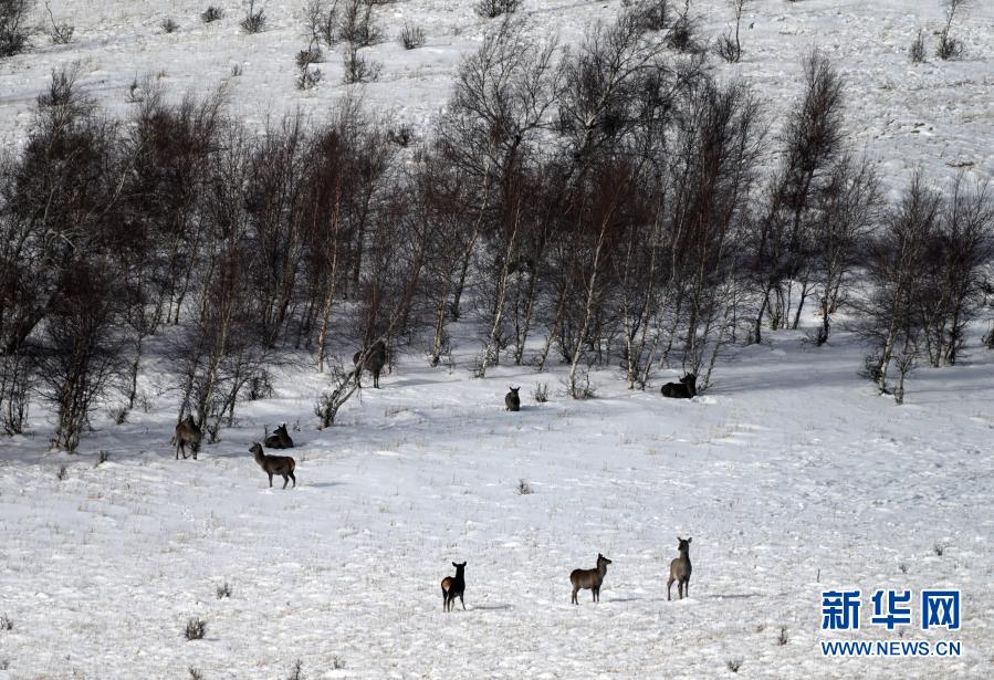 11月27日在黃崗梁國家森林公園拍攝的野生馬鹿。新華社發(fā)(宿海東 攝)