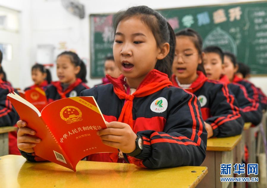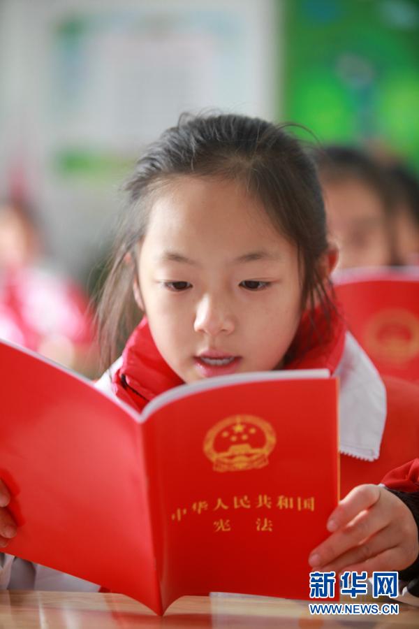 12月3日,河北唐山遵化市第二實(shí)驗(yàn)小學(xué)學(xué)生在誦讀憲法。