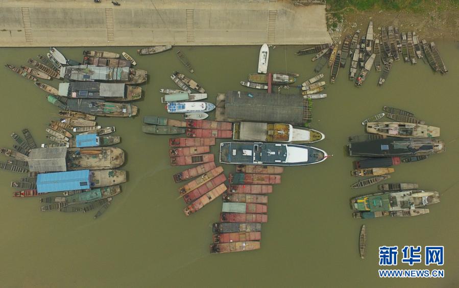 在湖南常德漢壽縣蔣家嘴鎮(zhèn),待回收的鐵漁船??吭诙赐ズ叄?019年12月17日攝,無人機(jī)照片)。2020年1月1日零時起,長江流域332個自然保護(hù)區(qū)和水產(chǎn)種質(zhì)資源保護(hù)區(qū)全面禁止生產(chǎn)性捕撈。新華社記者 薛宇舸 攝