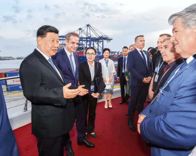 △2019年11月,習(xí)近平參觀中遠(yuǎn)海運(yùn)比雷埃夫斯港項(xiàng)目。