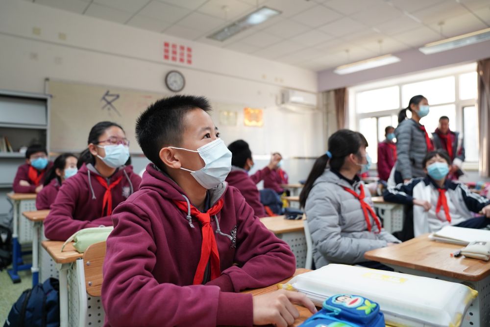 2020年6月1日,蔡昊霖與北京百萬余名中小學生一樣,在經歷了“超長寒假”后興高采烈地回到闊別已久的校園。佩戴口罩,胸前飄揚著紅領巾,他與校長揮手致意的瞬間,被攝影師永久定格在照片上。這張表現(xiàn)學生返校的照片在網絡上引起了廣泛傳播。