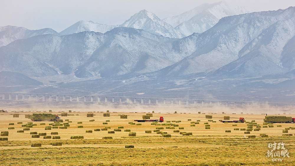 △11月中旬,祁連山下山丹馬場(chǎng)20余萬畝燕麥草進(jìn)入收獲尾聲。各農(nóng)業(yè)單位人機(jī)齊上,確保顆粒歸倉、寸草歸垛。