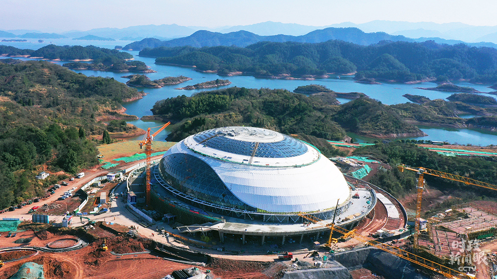 △1月10日,浙江杭州,2022年亞運(yùn)會(huì)淳安場(chǎng)地自行車館正加緊建設(shè)中,爭(zhēng)取今年3月底前完成竣工驗(yàn)收。