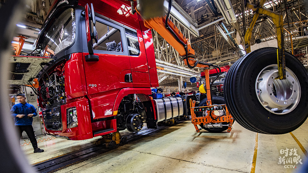 △1月4日,工人在陜重汽總裝生產(chǎn)線上作業(yè)。2020年4月,總書記在陜汽調(diào)研時(shí)曾強(qiáng)調(diào),制造業(yè)是國(guó)家經(jīng)濟(jì)命脈所系。