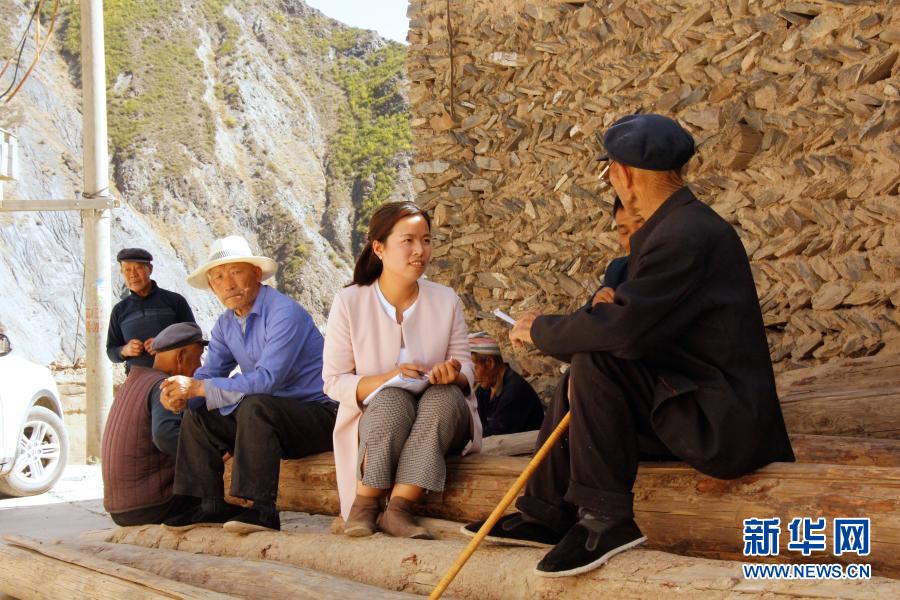 甘肅省甘南藏族自治州舟曲縣扶貧辦副主任張小娟(右二)在下鄉(xiāng)時(shí)向群眾了解情況(2018年4月攝)。2019年10月7日,時(shí)任縣扶貧辦副主任的張小娟在完成曲告納鎮(zhèn)上大年村脫貧攻堅(jiān)縣級(jí)抽樣調(diào)查工作后,返程途中所乘車輛不慎墜江,因公殉職。新華社發(fā)