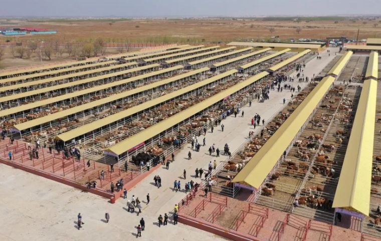 ↑位于大興安嶺南麓集中連片特困地區(qū)的內(nèi)蒙古興安盟科爾沁右翼中旗,過去沒有像樣的產(chǎn)業(yè),是內(nèi)蒙古脫貧攻堅(jiān)最難啃的“硬骨頭”之一。近年,科右中旗理清發(fā)展思路:吃生態(tài)飯、做牛文章、念文旅經(jīng),不僅甩掉了國家級(jí)貧困旗的窮帽子,更走出了一條綠意盈盈的發(fā)展新路。這是科右中旗肉牛交易市場(2020年5月1日攝,無人機(jī)照片)。