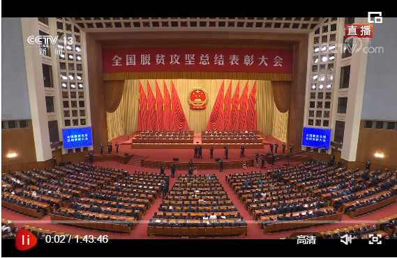 央視網(wǎng)消息:全國脫貧攻堅(jiān)總結(jié)表彰大會(huì)2月25日上午在北京人民大會(huì)堂隆重舉行。中共中央總書記、國家主席、中央軍委主席習(xí)近平向全國脫貧攻堅(jiān)楷模榮譽(yù)稱號(hào)獲得者頒獎(jiǎng)并發(fā)表重要講話。