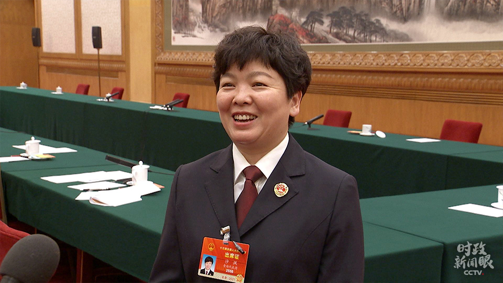 △沙沨代表在當(dāng)天的發(fā)言中,建議將基層治理以法治化手段實(shí)現(xiàn),一站式服務(wù)讓百姓少跑路。(總臺(tái)央視記者張曉鵬拍攝)