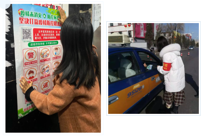 協(xié)助社區(qū)工作人員開展返鄉(xiāng)人員信息登記、查看健康碼、測(cè)量體溫,為進(jìn)出人員分發(fā)口罩、排查登記;深入醫(yī)院等公共場(chǎng)所,耐心宣講防疫知識(shí),引導(dǎo)居民做好自我防護(hù);將防疫小知識(shí)制作成手冊(cè),融入文字、圖片等多種元素,發(fā)放給當(dāng)?shù)鼐用?,廣泛宣傳防疫知識(shí)……同學(xué)們的身影忙碌于15個(gè)省份44個(gè)地市。